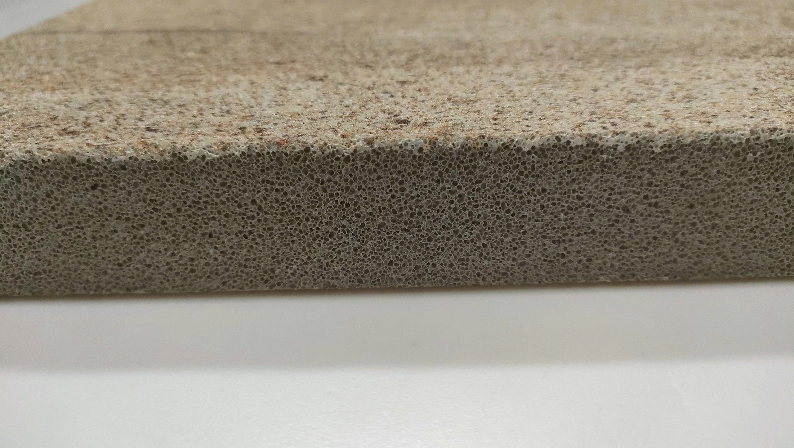 Trong ngành, gạch bọt sứ thường được gọi là “vàng cứng”, bởi nguyên liệu sản phẩm có nguồn gốc từ đất sét, phế thải đá cẩm thạch, xỉ luyện thép… Thông qua công nghệ tạo bọt, nung ở nhiệt độ cao 1200℃, sản phẩm hình thành cấu trúc lỗ rỗng khép kín với tỷ lệ cao.
